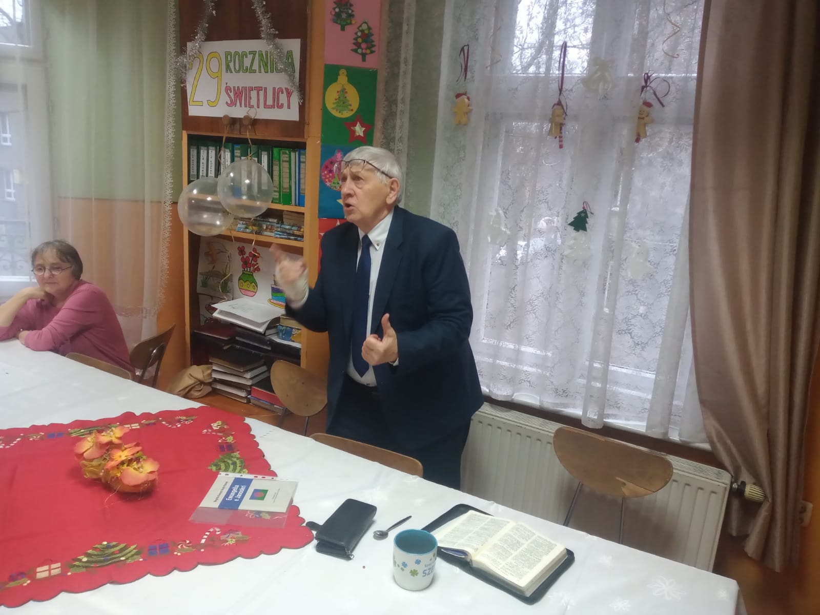 W dniu 21 grudnia 2025 roku w naszej Świetlicy odbyły się spotkania wigilijne z dziećmi. Wychowankowie Świetlicy wraz z opiekunami świętowali NARODZENIE PANA JEZUSA CHRYSTUSA. Dzieci przedstawiły swój program świąteczny: kolędy polskie, romskie oraz innych narodów, a także okolicznościowe wierszyki. Potem młodsze dzieci wysłuchały świątecznego przesłania Ewangelii o PRZYJŚCIU NA ŚWIAT ZBAWICIELA w formie „relacji” jednego z pasterzy, którzy czuwali wtedy na polach betlejemskich. Najpierw pasterzom objawił się anioł Pański, który oznajmił radosną nowinę, że ..”DZIŚ NARODZIŁ SIĘ WAM ZBAWICIEL” . Udzielił im też wskazówek, gdzie mogą odnaleźć to NOWO NARODZONE NIEMOWLĄTKO. Potem pojawiło się mnóstwo aniołów, chwalących Boga i śpiewających ” CHWAŁA NA WYSOKOŚCIACH BOGU, A NA ZIEMI POKÓJ LUDZIOM, W KTÓRYCH MA UPODOBANIE”. Wtedy pasterze poszli śpiesznie, aby odnaleźć i pokłonić się nowo narodzonemu ZBAWICIELOWI. Byli bardzo szczęśliwi, że właśnie im, zwykłym ludziom Bóg oznajmił tą CUDOWNA NOWINĘ. ON przyszedł z Nieba, ABY ICH ZBAWIĆ od ich grzechów. Potem pasterze z wielką radością przekazywali innym ludziom tą RADOSNĄ NOWINĘ. Czy wiemy, że PAN JEZUS PRZYSZEDŁ Z NIEBA NA ZIEMIĘ Z POWODU NASZEGO GRZECHU ? My również potrzebujemy tego WSPANIAŁEGO ZBAWICIELA. SAM BÓG nas tak bardzo ukochał, że posłał SWOJEGO JEDYNEGO SYNA, ABY NAS ZBAWIŁ OD NASZYCH GRZECHÓW.